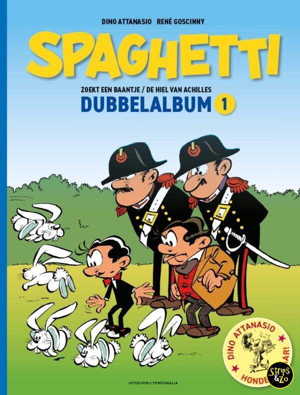 In dit dubbelalbum staan twee klassieke Spaghetti-verhalen uit de jaren zestig: Spaghetti zoekt een baantje en De hiel van Achilles. De hoofdpersoon Spaghetti zoekt nog steeds een baantje en zijn neef Prosjoetto laat zoals altijd de boel in het honderd lopen.